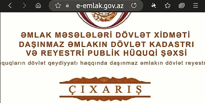 📄 Sənədlər: Çıxarış (kupça) və texniki pasport var.