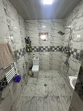 Maştağada düz yol kənarında (Mts yolu) deyilən yerdə, asfalt yolunun üstündə yerləşən öz şəxsi evimi satıram. 3 sotun içində100 kv/m Ev çox səliqəli və keyfiyyətli tikilib. 7 daş üzərində həm altında həmdə yuxarısında beton kəmərlə və qoşa daşla inşa olunub. Altında 2 ədəd ayrı girişli çox böyük padvalları var. Ümumi 4 otaq 3 yataq 1 qonaq və bir mətbəxdir. İsitmə sistemi kombidir. Ağac və bitki əkmək üçün çox da böyük yer olmasada nə əkilibsə (güllər, meyvə ağacları) hammısı bəhər verib. Bu ərazidə bütün komunallar (ışıq,su,qaz) daimidir. Həm daimi yaşayış, həmdə bağ evi kimi istifadəyə yararlıdır.Satış məqsədim ailənin böyüməsidir. Sənədi paket kupçadır həm torpaq həm evə (yaşayış). Xahiş edirəm maklerlər narahat etməsin. Qiymətdə real alıcı ilə razılaşma olacaq.