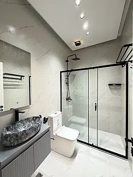 🔹 Zövqlü TV stend (quraşdırılacaq) 🔹 Tam təchiz olunmuş mətməx mebeli 🔹 Tam təchiz olunmuş hamamlar, bahalı aksesuarlarla quraşdırılmışdır. 🔹 Dekorativ güzgülər (quraşdırılacaq) 🔹 Zərif çilçıraqlar və digər aksesuarlar