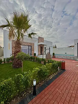 sizə ekoloji təmiz Mərdəkan qəsəbəsində 4.2 Sotda 1 mərtəbə 180 kv.m 4 otaqlı super bağ evini təklif edir. Bağ evi zal, mətbəx, 3 yataq otağı, holl və 2 sanuzeldən ibarətdir. Otaqlarda asılmış pərdə və lyüsturları, divar rəsmləri, hündür tavanları, duş kabinalı sanuzeli, mebelli mətbəxi, quraşdırılmış işıqlandırma sistemi var. Ev yüksək zövq və keyfiyyətlə təmir olunub. Su, qaz, işıq daimidir. İstilik sistemi kombidir, isti döşəməsi var. Həyətində geniş filterli hovuzu, şəlaləsi, cambalkon besedka (mebellər ilə), stol-stul, manqalxana, yelləncək, yay-qış mətbəxi, maşın saxlamaq üçün yer, pultla idarə olunan darvaza, dekorativ ağacları və gülləri, su anbarı, sensorlu gecə işıqları var. 4 mövsüm yaşamaq üçün əlverişlidir. Yolu qapıya kimi asfaltdır. Kupçası (Çıxarışı) var. Start qiyməti 375 000 AZN.