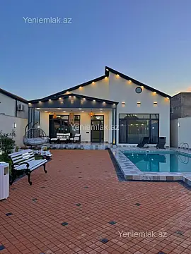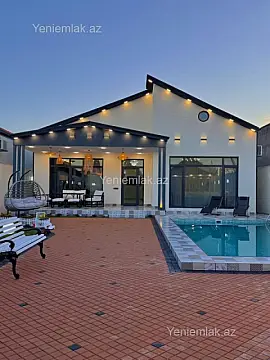Tam Əşyalı!! Sizə ekoloji təmiz Şüvəlan qəsəbəsində 5 Sotda 1 mərtəbə 180 kv.m 4 otaqlı super bağ evini təklif edirik. Bağ evi zal, mətbəx, 3 yataq otağı, holl və 3 sanuzeldən ibarətdir. Otaqlarda asılmış pərdə və lyüsturları, mebelləri, divar rəsmləri, hündür tavanları, duş kabinalı sanuzeli, mebelli mətbəxi, quraşdırılmış işıqlandırma sistemi var. Ev yüksək zövq və keyfiyyətlə təmir olunub. Su, qaz, işıq daimidir. İstilik sistemi kombidir, isti döşəməsi var. Həyətində geniş filterli hovuzu, şəlaləsi, lejankaları, cambalkon besedka, stol-stulu, manqalxana, yay-qış mətbəxi, maşın saxlamaq üçün yer, pultla idarə olunan darvaza, dekorativ ağacları və gülləri, su anbarı, sensorlu gecə işıqları var. 4 mövsüm yaşamaq üçün əlverişlidir. Yolu qapıya kimi asfaltdır. Kupçası (Çıxarışı) var. Start qiyməti 345 000 AZN.