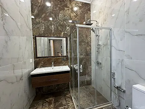 ✨ Yüksək keyfiyyətli tikinti və təmir 🛋️ Zövqlə seçilmiş interyer elementləri 💎 Lüks çilçıraqlar, dekorativ güzgülər və pərdələr 🍽️ Full təchizatlı mətbəx mebeli – 🛁 4 ədəd tam təchiz edilmiş sanitar qovşaq (əlavə dizayn detalları ilə) 🌡️ Bütün otaqlarda isti döşəmə sistemi