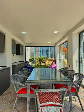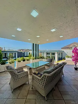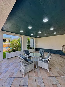 Tam Əşyalı!! sizə ekoloji təmiz Mərdəkan qəsəbəsində 6.5 Sotda 1 mərtəbə 190 kv.m 4 otaqlı super bağ evini təklif edir. Bağ evi zal, mətbəx, 3 yataq otağı, holl və 2 sanuzeldən ibarətdir. Otaqlarda asılmış pərdə və lyüsturları, hündür tavanları, tv, kondisionerləri, duş kabinalı sanuzeli, mebelli mətbəxi, quraşdırılmış işıqlandırma sistemi var. Ev yüksək zövq və keyfiyyətlə təmir olunub. Su, qaz, işıq daimidir. İstilik sistemi kombidir, isti döşəməsi var. Həyətində geniş filterli hovuzu, cambalkon besedka, stol-stul, manqalxana, yay-qış mətbəxi, yelləncək, maşın saxlamaq üçün yer, pultla idarə olunan darvaza, dekorativ ağacları və gülləri, su anbarı, sensorlu gecə işıqları var. 4 mövsüm yaşamaq üçün əlverişlidir. Yolu qapıya kimi asfaltdır. Kupçası (Çıxarışı) var. Start qiyməti 420 000 AZN. Qeyd : Bakı ətrafı qəsəbələrdə, xüsüsən də Mərdəkan, Şüvəlan, Bilgəh, Nardaran və s. ərazilərdə satışda olan digər bağ evləri və villalarımız var. Buyurun bizə müraciət edin.