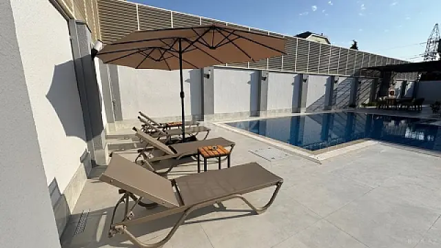 Həyətdə 10×4.5 metr ölçüsündə, rahat istifadə üçün nəzərdə tutulmuş daşma tipli hovuz quraşdırılıb. Torpaq sahəsi genişdir və abadlaşdırılıb. Tikintidə keyfiyyətli materiallardan istifadə olunub: pəncərələr İZO sistemli, dam örtüyü isə beton monolitdir – bu həm izolyasiya, həm də möhkəmlik baxımından üstünlükdür.