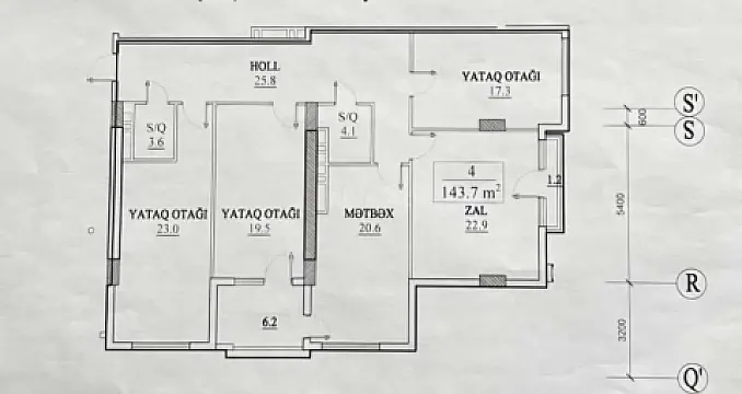 Satılır 4 otaqlı mənzil 144 m²