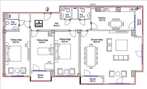 Satılır 4 otaqlı mənzil 171.5 m²