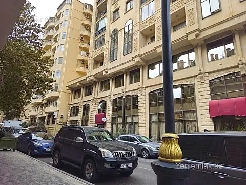 Bakı şəhərinin mərkəzində, İçəri-şəhər metrosu və Axundov bağının yaxınlığında, - məşhur inşaatçı Xəlilbəy (Rauf) Günəşov tərəfindən tikilmiş və 2005-ci ildə təhvil verilmiş 10 mərtəbəli, 1 bloklu binanın 5-ci mərtəbəsində, - 4 otaq, 1 mətbəx, 2 sanitar qovşağı, 1 qarderob və 1 şüşəbənd eyvandan ibarət, - ümumi sahəsi ≈ 148 m2 olan (o cümlədən, 142,29 m2 daxili sahə + 5,40 m2 şüşəbənd eyvan), - özəl dizaynla və seçkin materiallarla təmir edilmiş və kupe-şkaflar, mətbəx mebeli və avadanlıqla tam təmin olunmuş, pol parketdir - “kupçalı” özəl mənzil Bina – daş binadır. Bayır divarların qalınlığı 50 sm, tavanın hündürlüyü 3,20 metrdir. Bütün kommunikasiyalar, təhlükəsizlik kameraları və mühafizəçilər 7/24 fasiləsiz işləyirlər. Qonşular – əsasən tanınmış ziyalılar və dövlət xadimləridir.