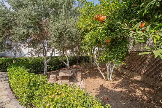 Bağ evinin pultla idarə olunan darvazası,1 maşınlıq qarajı,həyətində 2 otaqlı mühafizəçi evi,1 sanitar qovşağı,xüsusi düzəldimiş su quyusu,ehtiyat su çəni,söhbətgah və manqalxanası,kiçik şəlalə tipli hovuzu,yellənçəyi,yaşıllıq zonası və matorxanası vardır.