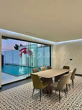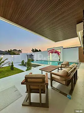 Bakı Bağları şirkəti sizə ekoloji təmiz Mərdəkan qəsəbəsində 8 Sotda 1 mərtəbə 240 kv.m 5 otaqlı super bağ evini təklif edir. Bağ evi zal, mətbəx, 4 yataq otağı, holl və 4 sanuzeldən ibarətdir. Otaqlarda asılmış pərdə və lyüsturları, hündür tavanları, mebelli mətbəxi, duş kabinalı sanuzeli, quraşdırılmış işıqlandırma sistemi var. Ev yüksək zövq və keyfiyyətlə təmir olunub. Su, qaz, işıq daimidir. İstilik sistemi kombidir, isti döşəməsi var. Həyətində geniş filterli daşma hovuzu, stol-stulu, manqalxana, maşın saxlamaq üçün yer, cambalkon besedka, mebelli yay-qış mətbəxi, pultla idarə olunan darvaza, dekorativ ağacları və gülləri, su anbarı, sensorlu gecə işıqları var. 4 mövsüm yaşamaq üçün əlverişlidir. Yolu qapıya kimi asfaltdır. Kupçası (Çıxarışı) var. Start qiyməti 640 000 AZN.