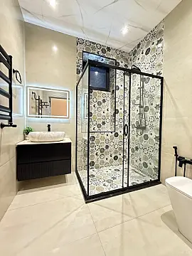 + besedka • Geniş qarderoblar • ⁠Tam təchiz olunmuş hamamlar, bahalı aksesuarlarla quraşdırılmışdır • ⁠Dekorativ güzgülər • ⁠Zərif çilçıraqlar və digər aksesuarlar • ⁠Yüksək keyfiyyətli pərdələr • ⁠Pultla idarə olunan jalüz qapı • ⁠Villa və besedka müasir isitmə sistemi ilə təchiz olunub