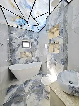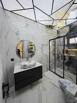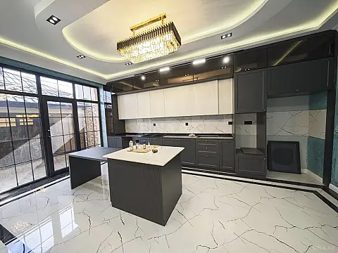 Ev yüksək keyfiyyətli və bahalı materiallarla şəxsi istifadə üçün tikilib. 5 geniş otaqdan ibarətdir. Həyətində qış mətbəxi və sanitar qovşağı mövcuddur. Hər mərtəbədə ayrıca hamam otağı var.