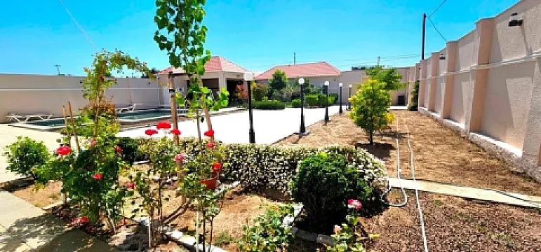 Продаётся эксклюзивный загородный 2-х этажный дом (дача), расположенный в посёлке Мардакяны напротив известного ресторана "Ветен". Очень удобные подъездные пути, расстояние до основной трассы 300 м. Размер участока 9 соток, 50 х 18 м., площадь дома 250 м2. На территории открытый бассейн, закрытый гараж, дом охраны со своим санузлом, беседка с мангальной зоной. Дом состоит из большого зала, 4-х санузлов, отдельной кухни и столовой комнаты, 4 спален (в 3-х есть санузлы). Созданы все удобства для отдыха и комфорта. В доме проведены все коммуникации вода, свет, газ, отопление. Имеется купчая на дом и земельный участок. В доме свежий ремонт. Продаётся со всей мебелью. S 6993