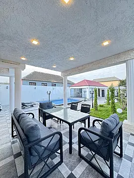 Mərdəkanda 7 sot torpaq sahəsində əşyallı bag evi satisha cixib.,Evin umumi sahəsi 280 kv, 5 otaqdan ibarətdir.1-zali 4 yataq otagi.mətbəxi.4 sanuzel var.Hündür tavanlı, zövglə təmir edilib. istilik sistemi kobidir. Keyfiyyətli tikinti materiallarından istifadə olunub.Həyətində mətbəxi,basseyn.manqalni.besetkasi var.Ev tam infrastrukturlu yerdə yerləsir və il boyunca yasamaq ucun yararlidir.Icməli suyu,qazi,shigi daymidir. Sənədlər qaydasındadır, Paket kupçası var.