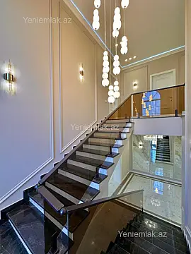 Sizə ekoloji təmiz Mərdəkan qəsəbəsində Bravo supermarketin yaxınlığında, əsas yoldan 450 metr məsafədə 14 Sotda 2 mərtəbə 460 kv.m 6 otaqlı super bağ evini təklif edirik. Bağ evi zal, mətbəx, 5 yataq otağı, camaşırxana, geniş eyvan, geniş holl və 5 sanuzeldən ibarətdir. Otaqlarda asılmış pərdləri, hündür tavanları, mebelli mətbəxi, duş kabinalı sanuzelləri, quraşdırılmış işıqlandırma sistemi var. Ev yüksək zövq və keyfiyyətlə təmir olunub. Su, qaz, işıq daimidir. İstilik sistemi kombidir, isti döşəməsi var. Həyətində geniş filterli daşma hovuzu, cambalkon besedka, yay-qış mətbəxi, terras, manqalxana, söhbətgah, mini stadion, mühafizə evi. parking ərazisi, pultla idarə olunan darvaza, yaşıllıq ərazisi, dekorativ ağacları və gülləri, sanitar qovşaq, su anbarı, sensorlu gecə işıqları var. 4 mövsüm yaşamaq üçün əlverişlidir. Yolu asfaltdır. Kupçası (Çıxarışı) var. Start qiyməti 1 200 000 AZN.