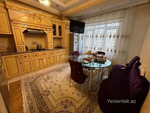 Novostroyka! 5 otaq supertemirli parket palid mozaika kombi, zal 50 kv, 3 iri yataq otagı, geniş xoll, metbex mebeli ve meiset texnikalari, kondisionerler, ela menzeresi var, mebeller qiymete daxil deyil, binada qaz kupca var, 24 saat muhafize olunan heyeti, parkinq.