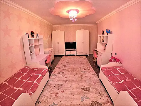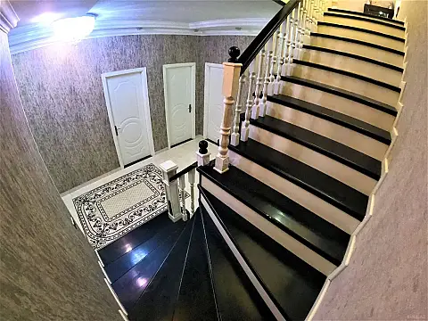 BİNƏQƏDİDƏ 2 MƏRTƏBƏLİ HƏYƏT EVİ!!!! . Binəqədi qəs, Polis İdarəsinə yaxın məsafədə yerləşən 2 mərtəbəli fərdi yaşayış evi satılır. Ev layihə əsasında tikilib və ümumi sahəsi 310 kv.m təşkil edir. Tikili 3 sot torpaq sahəsində yerləşir ki, bunun 1.5 sotu evin özü, 1.5 sotu isə həyət sahəsidir. Mərtəbələr arası beton monolitdir və ev keyfiyyətlə inşa olunub. . Birinci mərtəbədə 1 otaq, 1 geniş zal, 1 mətbəx, holl, qarderob, 1 sanuzel, eyvan və ayrıca eyvan mətbəxi mövcuddur. İkinci mərtəbədə 4 otaq, geniş holl, 1 sanuzel və eyvan yerləşir. Otaq sayını istəyə uyğun artırmaq imkanı da var. Ev tam izolyasiya olunub və keyfiyyətli materiallarla təmir edilib. Hollarda isti döşəmə sistemi qurulub. Döşəmələr laminatla örtülüb və taxta döşəmənin üzərindən əlavə izolyasiya olunaraq daha möhkəm və dayanıqlı formada hazırlanıb. Mərtəbələr arası pilləkən yüksək keyfiyyətli fıstıq ağacından yığılıb. . Evdə bütün kommunal şərait mövcuddur. Kombi sistemi quraşdırılıb, qaz, su və işıq daimidir. Su filter sistemi mövcuddur, həmçinin 13 tonluq yeraltı su deposu quraşdırılıb. Ev optik internet xətti ilə təmin olunub və hər iki mərtəbə üçün ayrıca Wi-Fi sistemi mövcuddur. Şəhər telefonu xətti çəkilib.