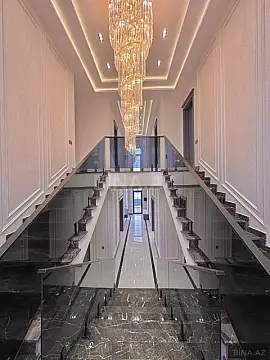 Mərdəkan qəsəbəsində 8 Sotda 2 mərtəbə 300 kv.m 6 otaqlı yeni təmirdən çıxmış əla bağ evini sizə təqdim edir. Bağ evi geniş zal, 5 yataq otağı, holl, mətbəx və 4 sanuzeldən ibarətdir. Su, qaz, işıq daimidir. Tam hazır sanitar qovşaqları, mebelli mətbəxi, lyüsturları, hündür tavan, işıqlandırma sistemi, isti döşəməsi var. İstilik sistemi kombidir. Həyətində dekorativ ağacları, yaşıllıq ərazisi, geniş filterli hozuvu, söhbətgah, manqalxana, cambalkon besedka, yay-qış mətbəxi, pultla idarə olunan jalyüz darvaza, qaraj, sensorlu gecə işıqları var. Bağ 4 mövsüm yaşamaq üçün əlverişlidir. Bütün sənədləri qaydasındadır, Kupçası (Çıxarışı) var. Start qiyməti 740 000 AZN.