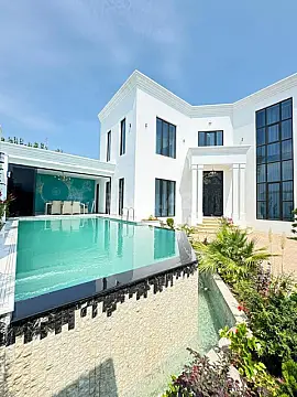 Mərdəkanda bağ evi satılır 5 sotda,besetkası,Ümumi sahəsi 450kv, 6 otaqdan ibarət,1-zalı 2-sanuzeli,hündür tavanlı, zövgle təmir edilib, istilik kombi sistemi, keyfiyyətli tikinti materiallarından istifadə olunub, yay mətbəxi,yolu asfalt, ev tam infrastrukturlu yerdə yerləşir, və il boyunca yaşamaq üçün yararlıdır.İçməli suyu,qazı,daymi. Sənədlər qaydasındadır, kupçası var.