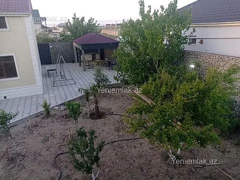 Türkanda 7 otaqlı Həyət Evi. Türkan qəs. (Bağlara yaxın). 5 sotun içində, 2 mərtəbəli, u/s 165 kv.m olan, 7 otaqlı, əla təmirli və hər bir şəraitli bağ evi satılır. 1-ci mərtəbədə – 1 zal, 2 yataq otağı, 1 mətbəx. 2-ci mərtəbədə – 3 yataq otağı, 1 ədəd böyük zal və balkon var. 2-ci mərtəbədən dəniz görünür. 3 ədəd hamam-tualet var. Qaz, su, işıq, internet var. İstilik sistemli kombi. Həyət bütün qaya daşlarla hasarlanıb. Həyətində besedka var. Borunda bir besedkası, cam balkonlu, əşyalıdır və kladovkası var (6x4). Şəxsi tikilmiş bağ evlər. Sadəcə resotka və plintusları qalıb, onlar da həll olunacaq. Dənizə çox yaxın məsafədədir. Sənədi kupça. Qiyməti – 158000 azn.