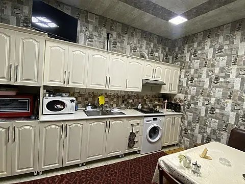 Cox genis,temirli ev. Su isiq qaz daimidir. Senedleri qaydasindadir. Orta manalit qat. Her mertebede ayrica metbexi,her mertebede hamam tualeti,genis isiqli otaqlar.
