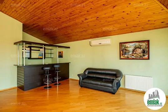 Badamdarin Mərkəzində, Gəlin Qaya Restoranin arxası, Aef hotelinin yaxinliqinda 8.3 sotda, 404.7kv.m sahəsi olan 3 mərtəbəli 7 otaqlı; 5 yataq otağı,100kv.m zal, 30kv.m xoll, 4 san.qovşağı, ayrıca qarderob otağı, 27kv.m mətbəxi, otaqlarda və koridorda divarda quraşdırımış şifonerlər və digər mebellər, dəniz mənzərəli, həyətdə evdən kənarda qazanxanası”Dəmirtöküm kotyol və 300 litr boyler”, 2 besedkası, manqalxanası və 63kv.m sahəsi olan ayrı tam təmirli və hər şəraiti olan 2 otaqlı qonaq evi.