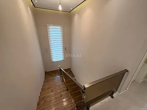 1ci mərtəbədə 50 kv.m zal, böyük və kiçik yataq otağı, içində sanuzel, mətbəx və sanuzel, 2ci mərtəbədə 4 yataq otağı, sanuzel, 60 kv.m terras və terrasa çıxışda mini mətbəx, aşağıda bağlıq sahəyə açılan 45 kv.m böyük yay mətbəxi, yarım zirzəmidə 2 otaq var, sauna, idman zalı kimi istifadə edilə bilər. Həyətdə əlavə bir sanuzel, əlavə olaraq 13 tonluq su çəni quraşdırılıb.