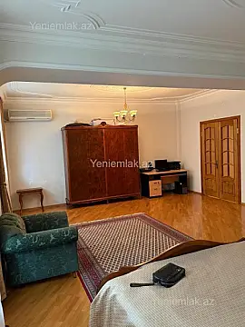 iki mənzilin birləşməsi əsasında formalaşdırılmış, faktiki olaraq 4 böyük otaqlı mənzil. Mənzil ilkin olaraq 4 otaq + 3 otaq olmaqla iki ayrı mənzil olub və daha sonra birləşdirilərək geniş, komfortlu yaşayış sahəsinə çevrilib. Hazırda planlaşdırma belədir: • 3 yataq otağı • 1 geniş qonaq otağı • Çox geniş dəhliz • Böyük və rahat mətbəx İstəyə görə alıcı mənzili yenidən iki ayrıca mənzilə bölə bilər. Mənzil əşyaları ilə birlikdə satılır. Mebellərin böyük əksəriyyəti İtaliya istehsalıdır və yüksək keyfiyyətlidir. Mənzil binanın 3-cü mərtəbəsində yerləşir, bu səbəbdən həm yaşayış, həm də ofis kimi istifadə üçün uyğundur. Bina yüksək keyfiyyətlə inşa edilib. Həyətə yalnız sakinlərin avtomobilləri buraxılır (şlaqbaum sistemi). Blokda 2 ədəd lift mövcuddur. Çıxarış (kupça) var. Mənzilin 6 balkonu var və hər otaqdan balkona çıxış mövcuddur. Mənzilin altında yerləşən mərtəbədə mənzil yerləşir Real alıcı ilə razılığa gəlinəcək Xidmət haqqı alqı-satqı məbləğinin 1 faizi