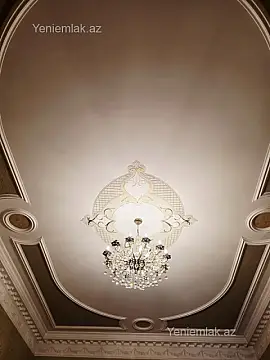 Xətai rayonu, Nobel prospektində (8 Noyabr prospektində) “Asiman” şadlıq sarayının arxasında, Həzi Aslanov qəsəbəsinin tam mərkəzində 8 sotun içərisində 2 mərtəbəli 350 m2 villa. Villanın və hasarının divarlarının fasad hissəsindəki daşların hər biri yonulub, faskalanıb hörülmüşdür(əl işidir). Evin şimal hissəsinin divarlarının qalınlığı 60 sm-dir. Mərtəbələr monolit betondur. Villa çox əlverişli və hündür ərazidə yerləşir. Ərazinin 4 tərəfdən də zaboru özünə aiddir. Villa ilə arasında məsafə var, birləşik deyil. Təmirdə və tikintidə keyfiyyətli materiallardan istifadə olunub, möhkəm bünövrə üzərində inşa edilib. Ev 5 otaq, 1 zal, 2 mətbəx, 2 xol, 1-ci və 2-ci mərtəbələrdə ayrıca s/u-dən ibarətdir. Otaqlar bahalı parketlə döşənib. Parket mozaika, ara qapıları fıstıq ağacından, pəncərələr təmiz alman şirkəti KBE-dir, çilçıraq altları əl işləridir. Yay mətbəxinin altında 10 tonluq ehtiyat su anbarı var. Həyətdə navesi, ayrıca qazanxana sistemi, həyətdə mətbəx, s/u qovşağı, pultla idarə olunan darvazası var. Yaxınlıqda uşaq bağçası, məktəb və market və s. yerləşir. Villanın çıxarışı var. Qiymətdə razılaşmaq olar.
