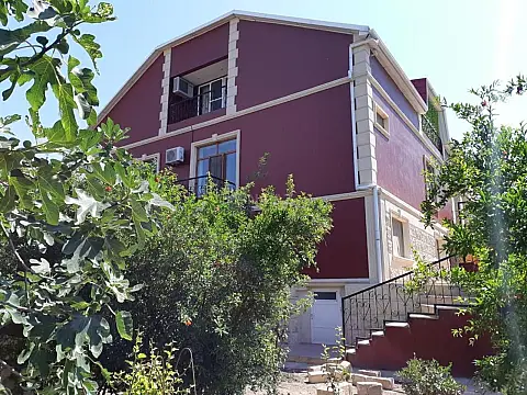 Ev Bərdə şəhərinin mərkəzində yerləşir.Yaxinliqda islam mərkəzi,İbrahim məscidi, Nüşabə qalası musiqi məktəbi park yerləşir. Ev 7 il əvvəl tam müasir üslubda təmir olunub evin hər mərtəbəsi 170 kv -dir.ev istilik və kondisioner sistemi ilə təchiz olunub.Masin üçün park, fəvvarə besedka və yay mətbəxi mövcuddur.Ev bütün əşyaları ilə birgə satılır (mebel televizor mik dalğalı soba ve s.Meyve ağaçları olan bağı var(nar əncir üzüm fındıq zoğal xurma heyva və s. Rahat yaşayış üçün hər cür şərait var . Bütü sənədlər qaydasındadır. Ev yalnız real alıcılara göstərilir: Bakı,Moskva da istənilən daşınmaz əmlakla dəyişilməsi və ya barter nəzərə alına bilər
