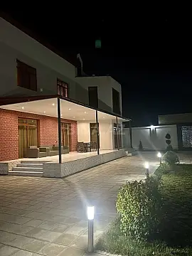 1 zal, 5 yataq, 4 san/q, bilyard, çox geniş mansardı (istirahət otağı) mətbəx, 2 böyük qarderob otağı, camaşırxana, besedka, terrasa, manqal, şəlalə, 10*5 ölçüdə hovuz, it volyeri, mühavizəçi evi, qapalı qaraj və professional halqalı basketbol meydançası var. Bağın qazı,suyu,işığı daimdir. İstilik sistemi kombi. Boyük su bakı. Nəzarət kameraları mövcuddur. Sənədlərin hamısı qaydasındadır (ÇIXARIŞlı). Darvazası və qaraj qapısı pultla idarə olunur.
