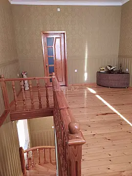 Satılır 9 otaqlı həyət evi/bağ evi 420 m², Şirvan Şirvan şəhərində ən prestijli yerlərdən birində, Heydər Əliyev prospektindən 200 m məsafədə Bağ Evlərində, 7,5 sotda tam təmirli 420 m2 ev satılır. 1-ci mərtəbədə 2 yataq otağı, yemək otağı, hər yataq otağında biri olmaqla 2 geyim otağı (qarderob), uşaq otağı, oturma otağı (zal), mətbəx, hamam/tualet, hol, 1 açıq balkon yerləşir. 2-ci mərtəbədə yataq otağı, hamam/tualet, oturma otağı (mansard), böyük geyim otağı (əsas qarderob), hol, 1 açıq balkon yerləşir. Həyətdə içində tam şəraitli mətbəx, əlavə otaq və hamam/tualet olan əlavə tikili var. Əlavə olaraq həyətdə açıq yay mətbəxi də var. 4 tonluq əsas və 1 tonluq ehtiyat su çəni, evin arxa və yan tərəfində qarderob var. Evdə yaşamaq üçün hər bir şərait (kombi, kondisioner, elektro kamin, duş kabin, telefon, internet, peyk antena) mövcuddur. Evin sütünları monolit betondur.