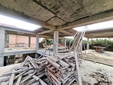 Площадь здания составляет 270 кв. м на этаж, всего 3 этажа. Общая площадь: 810 кв. м. Здание построено с соблюдением высоких стандартов качества. Использованы высококачественный бетон и арматура. Состоит из 2 этажей и подвала.