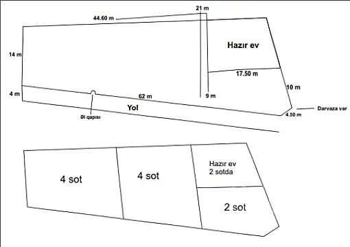 Qala qəsəbəsində, magistral yoldan cəmi 50 metr məsafədə, asfalt yola çıxışı olan çox əlverişli ərazidə yerləşən 3 otaqlı həyət evi və 12 sot torpaq sahəsi satışa çıxarılıb. Evin ümumi sahəsi 110 m²-dir və əla təmirlidir. Mənzil bütün şəraitlə təmin olunub, “gir yaşa” vəziyyətindədir və həm yay, həm də qış mövsümündə rahat yaşayış üçün tam uyğundur. Həyətyanı sahə 12 sotdur və torpaq 4 hissəyə bölünüb, hər bir hissənin ayrıca sənədləri mövcuddur. Bu xüsusiyyət torpağı tikinti və investisiya baxımından çox sərfəli edir. Hər bir sahədə bir neçə kiçik ev tikib satışa çıxarmaq mümkündür. Buna görə də əmlak həm şəxsi yaşayış, həm də gəlir gətirən biznes layihəsi üçün ideal seçimdir. Əlavə olaraq tikinti üçün 1 maşın mişar daşı hədiyyə olunur. Sənədlər tam qaydasındadır, çıxarış (kupça) mövcuddur. Biznes yatırımı və ya gələcəkdə yüksək gəlir əldə etmək istəyənlər üçün əla fürsətdir. Ünvan: Qala qəsəbəsi, magistral yoldan 50 m məsafədə. Kod: 4459
